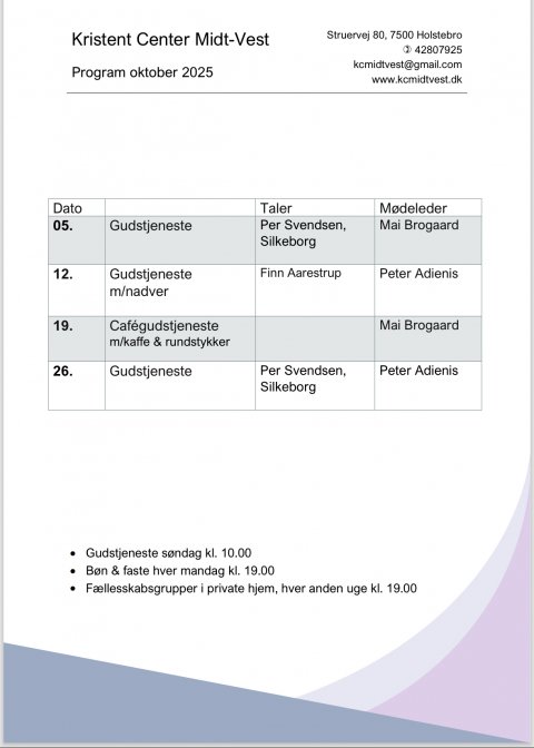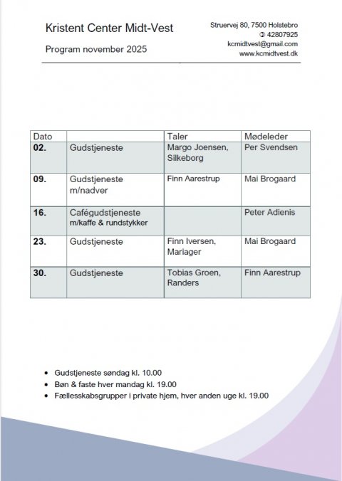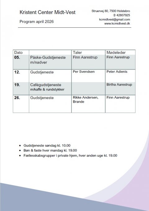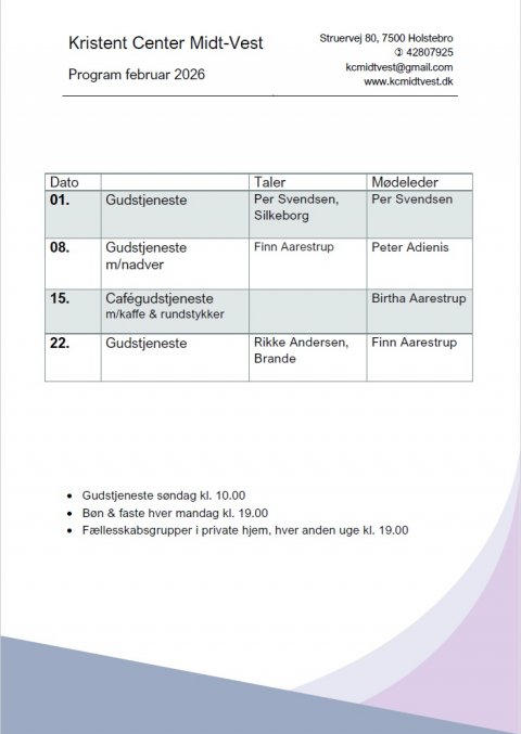Kristent Center Midt-Vest | CVR: 29753075 | Struervej 80, 7500 Holstebro | Tlf.: 42807925 |